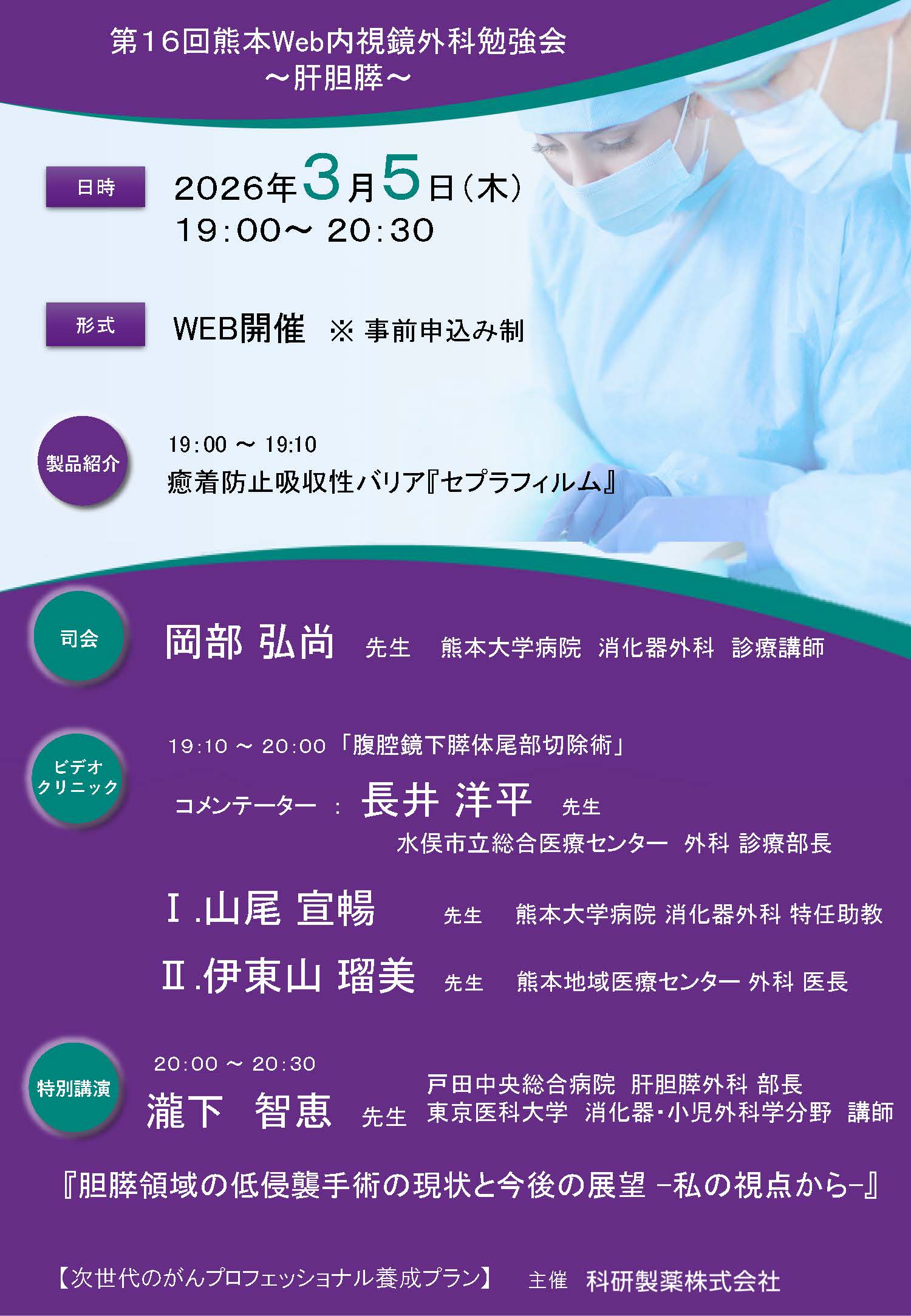 第13回熊本Web内視鏡外科勉強会を下記の日程で開催いたします。