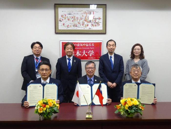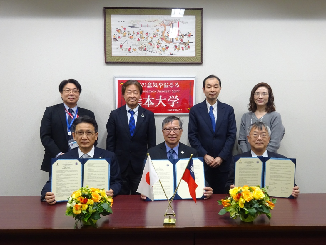 令和7年11月25日に熊本大学本荘キャンパス基礎医学研究棟において、熊本大学大学院医学教育部及び医学部と台湾の高雄医学大学医学部と部局間の学生交流協定の調印式を行いました。