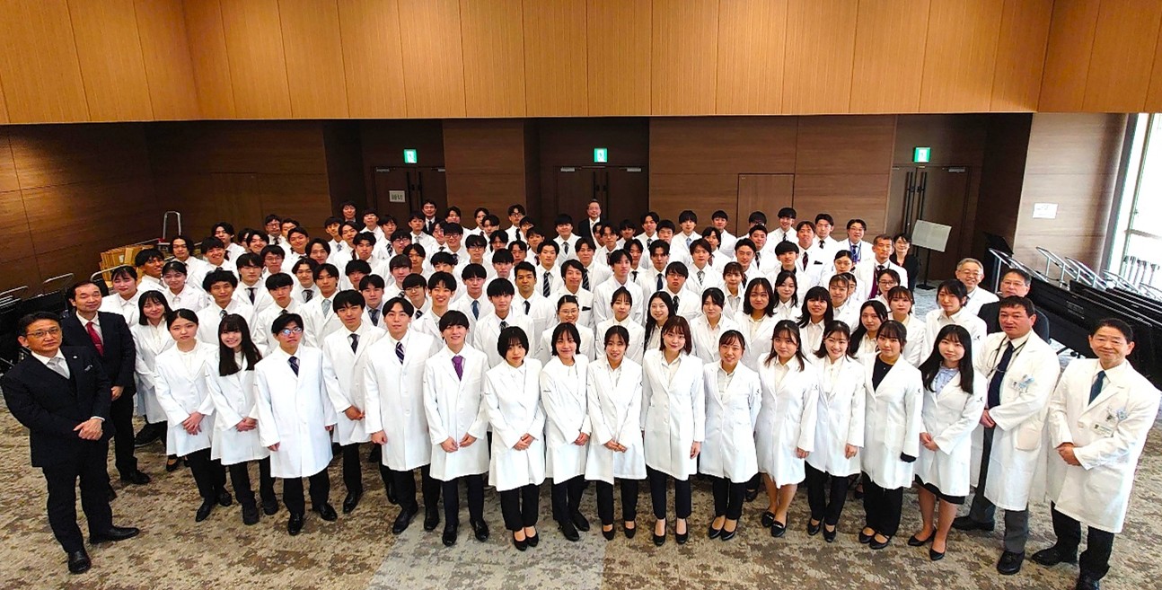 2025年12月5日にくすのきテラス3階大会議室にて、臨床実習に進む4年生【臨床実習生(医学)※】102名を対象に、医学科白衣授与式を挙行しました。