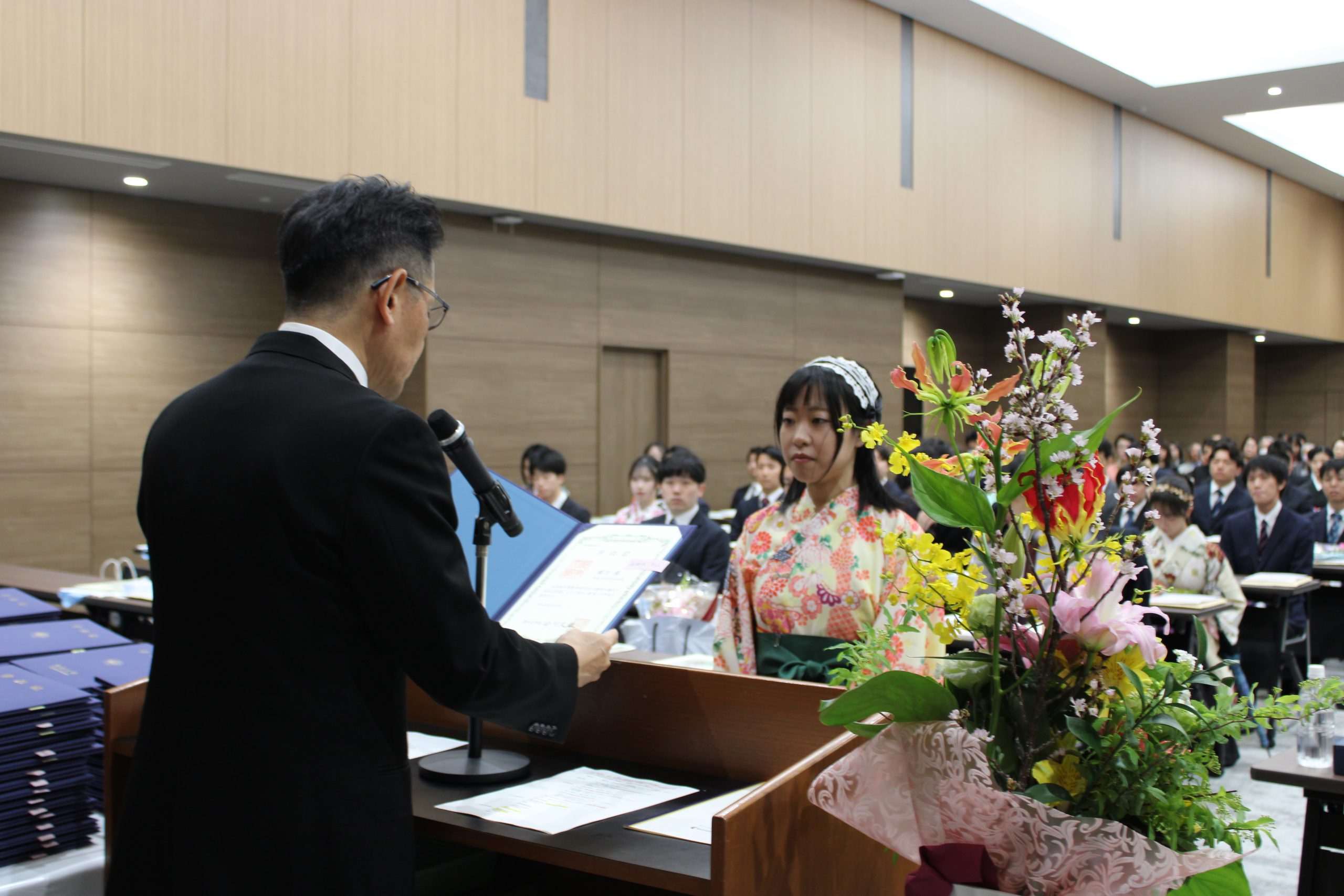 式典では、尾池医学部長から卒業生一人ひとりに学位記が手渡され、医師としての第一歩を踏み出す皆さんの門出を祝福しました。