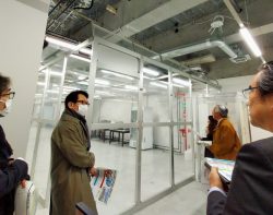 翌日には、東海大学のみなさまと熊本大学の施設を見学しました。昨年完成した「SOIL」や「D-Square」、先端半導体研究クリーンルームなどの半導体研究・教育施設を回り、施設・設備や研究に関する説明を受け、熊本大学の医学部以外の研究分野について知っていただく機会となりました。