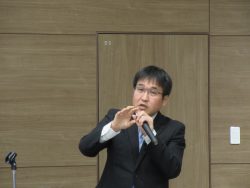 続いて4人の先生方による講演が行われました。前半は基礎系研究として、本学の澤教授から「超硫黄による食細胞機能の制御」について、東海大学の渡辺恒二教授からは「腸管原虫赤痢アメーバ:体内における病原制御機構について」のご講演をいただきました。両大学教員による共同研究も多数紹介され、連携の強さがうかがえました。続く後半は、臨床系研究として、熊本大学の窪田教授から「2型糖尿病・肥満症の分子機構」について、東海大学の佐藤正人教授から「運動器再生医療の社会実装‐東海大学の取り組みと規制課題」について講演しました。多くの質疑が行われ、時間が足りなくなるほど活発な議論となりました。