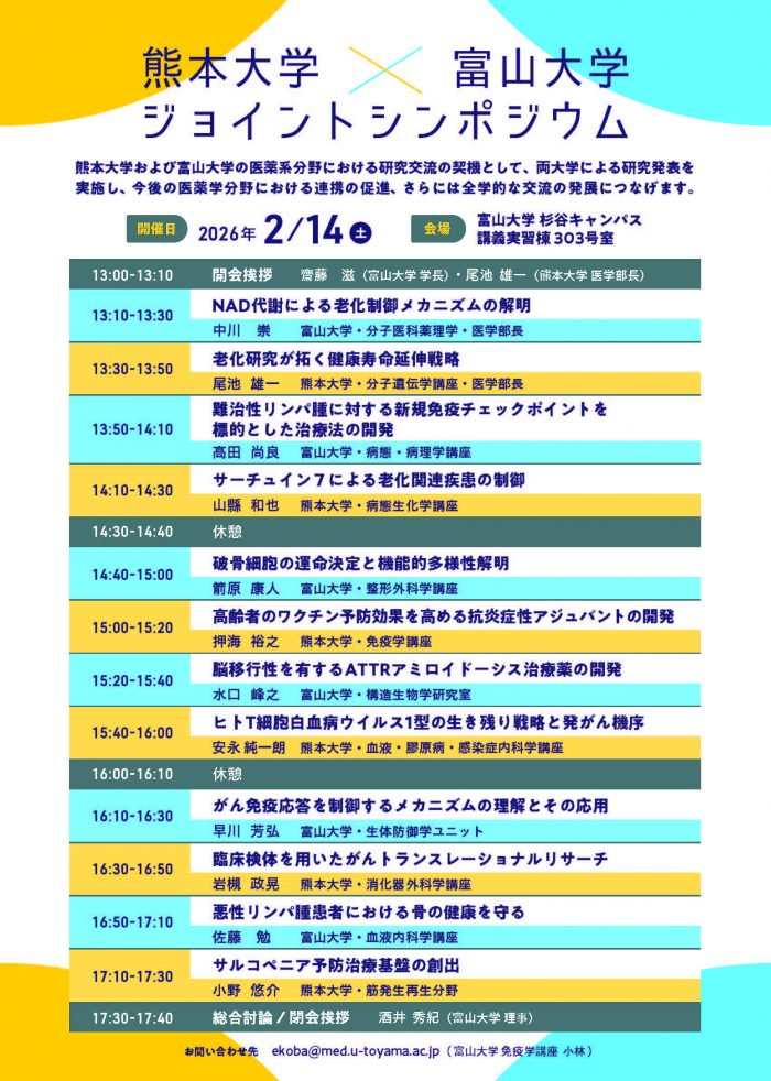 本シンポジウムを契機に、富山大学と熊本大学の研究交流が一層深まり、今後の連携強化へとつながることが期待されます。